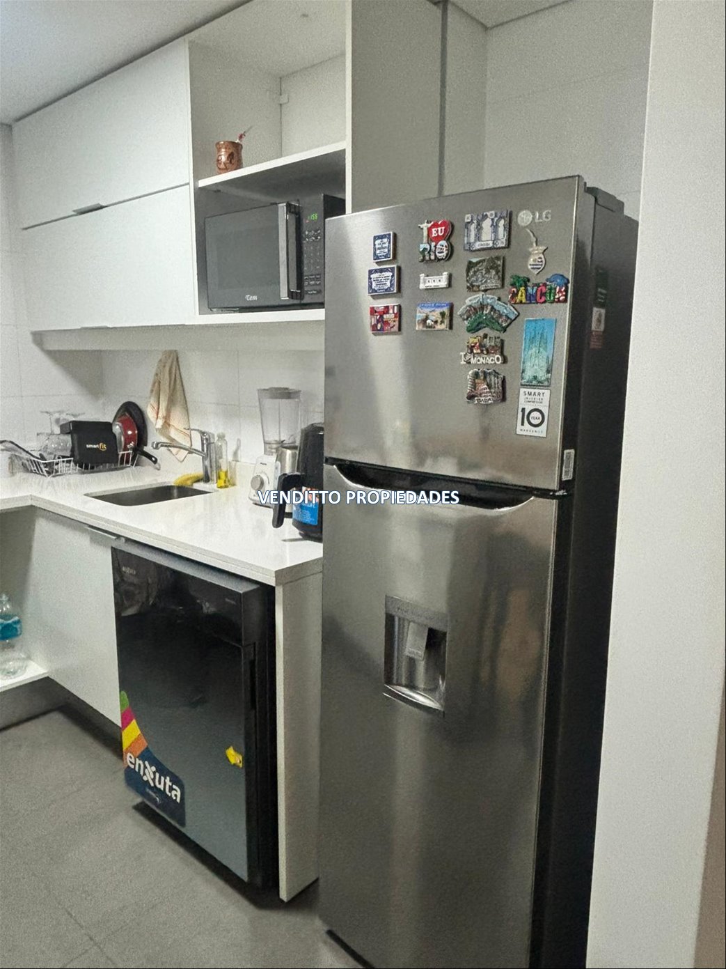 La unidad cuenta con una cocina integrada al living-comedor, un dormitorio, un baño completo y una amplia terraza que aporta amplitud al espacio. Dispone de aire acondicionado y calefacción central.