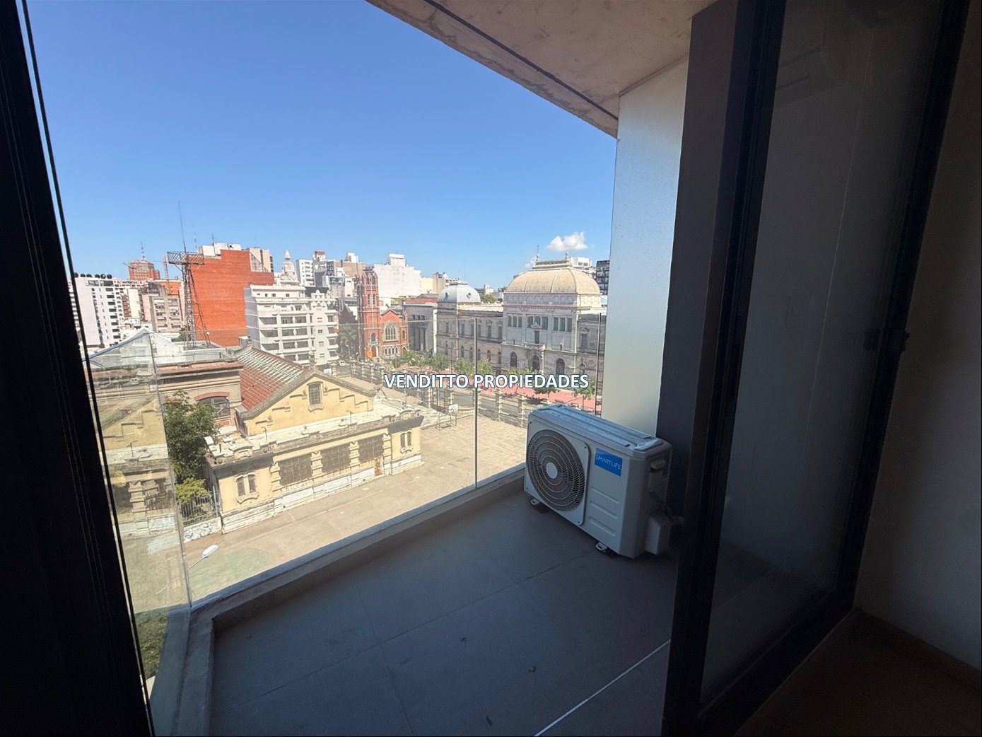 En un piso 7, la unidad se destaca por su vista despejada y la luminosidad que acompaña todos los ambientes. El living comedor es amplio y confortable, con aire acondicionado y salida directa al balcón al frente, un espacio disfrutable que además cuenta con cortina roller de protección solar, aportando privacidad y control de luz.