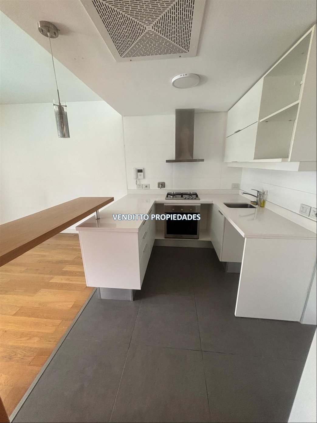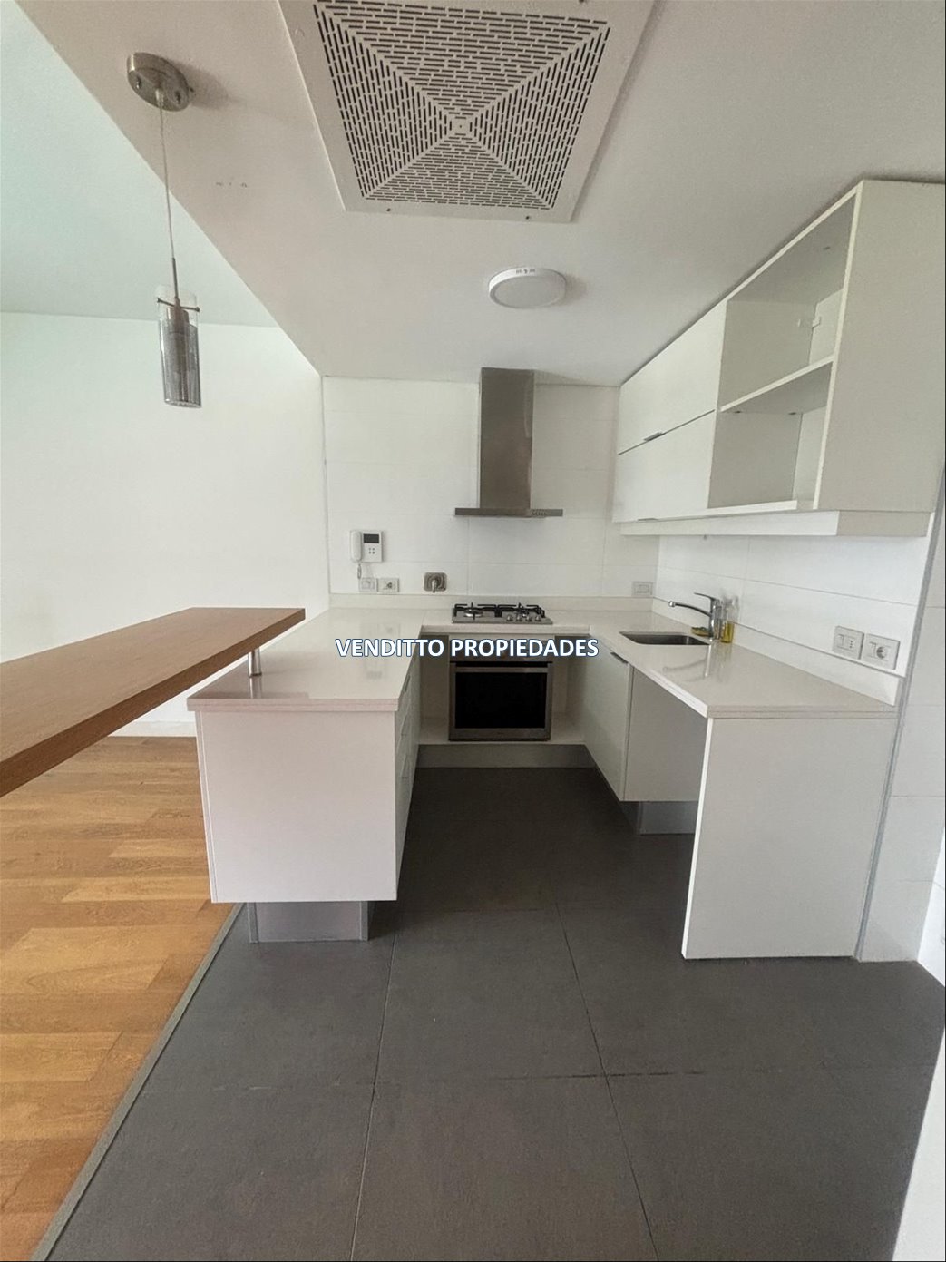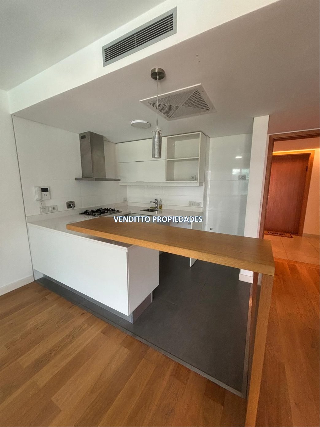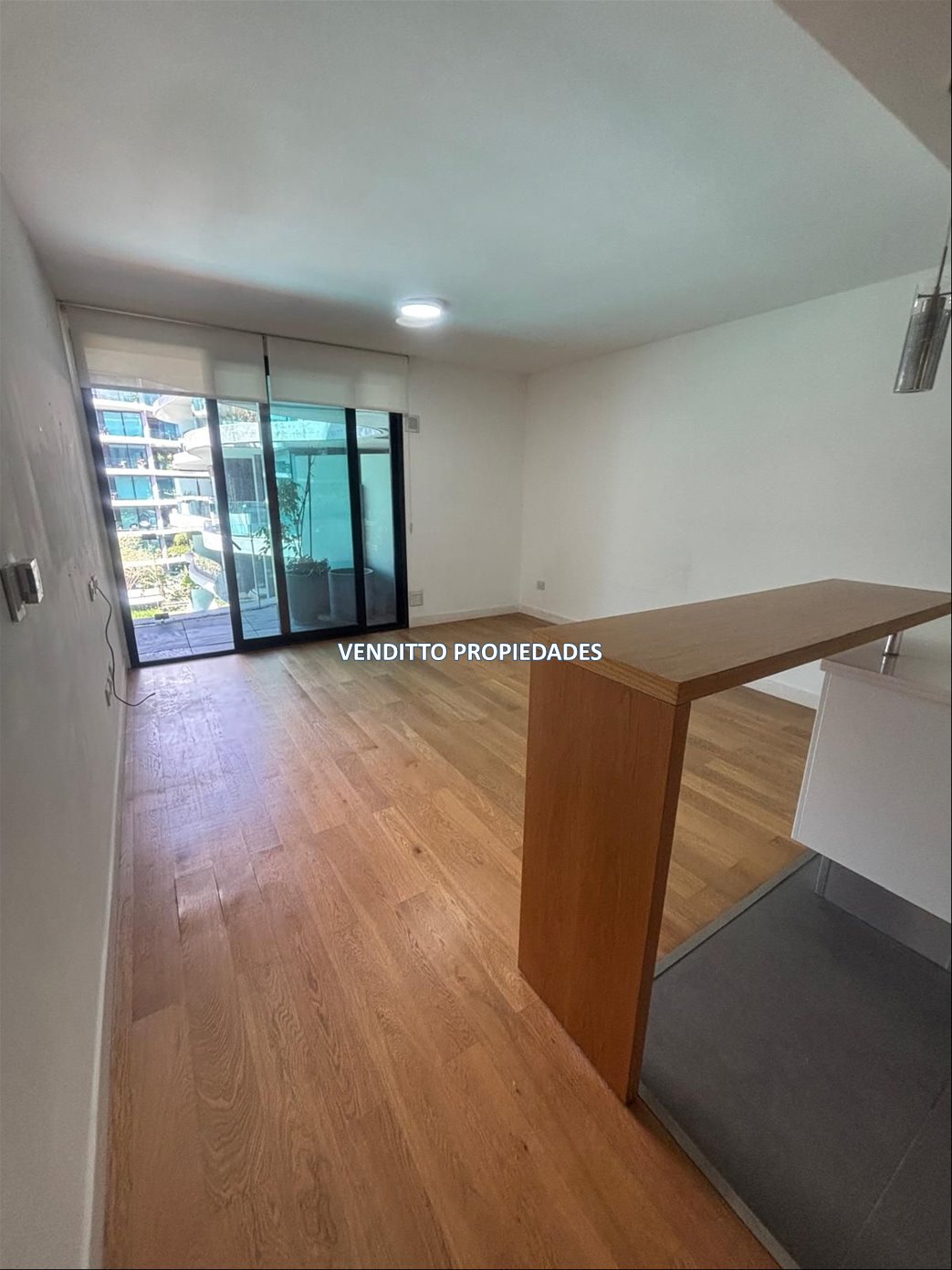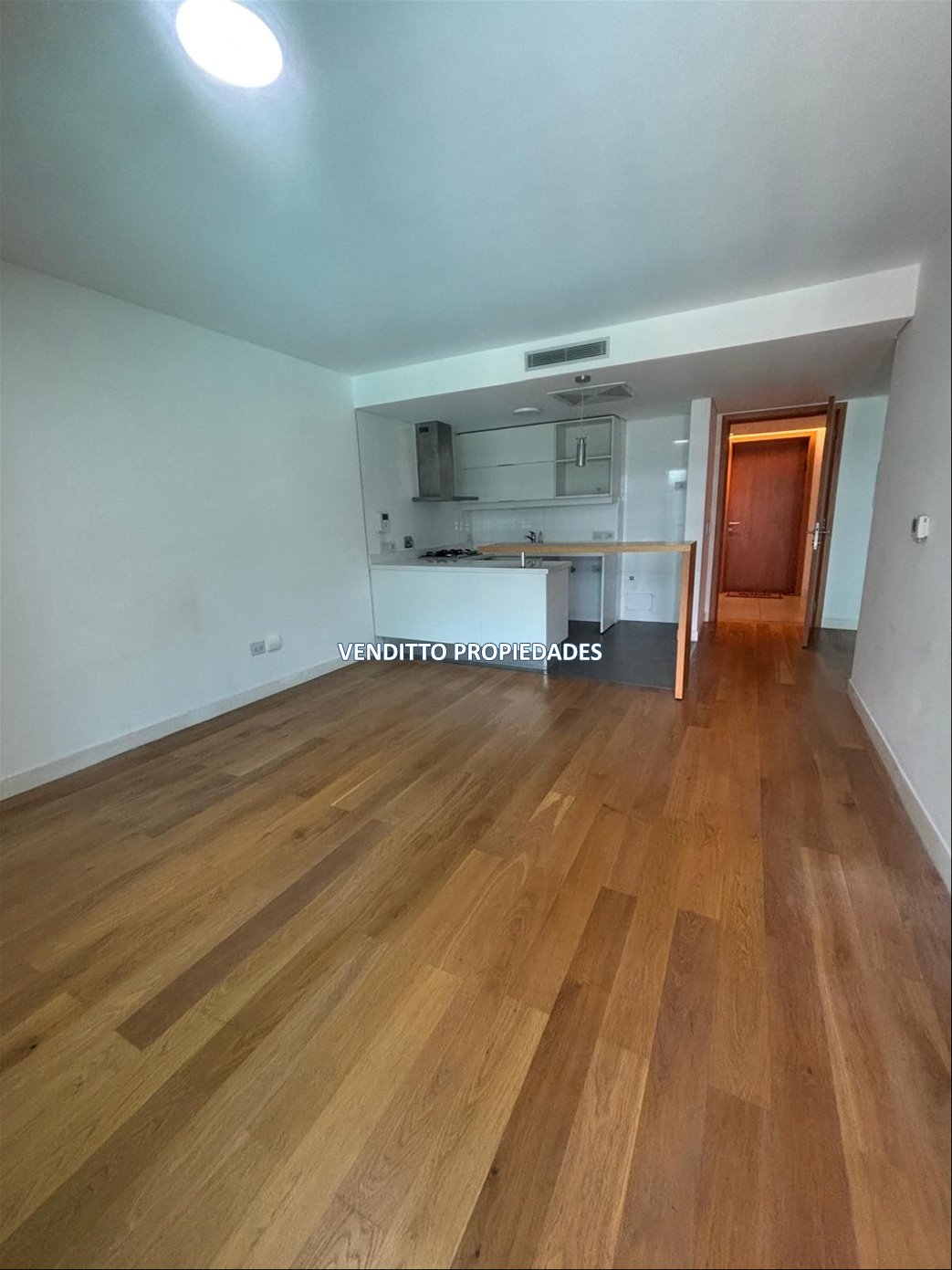 La unidad cuenta con una cocina integrada al living-comedor, un dormitorio, un baño completo y una amplia terraza que aporta amplitud al espacio. Dispone de aire acondicionado y calefacción central.