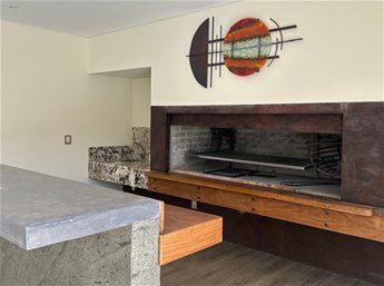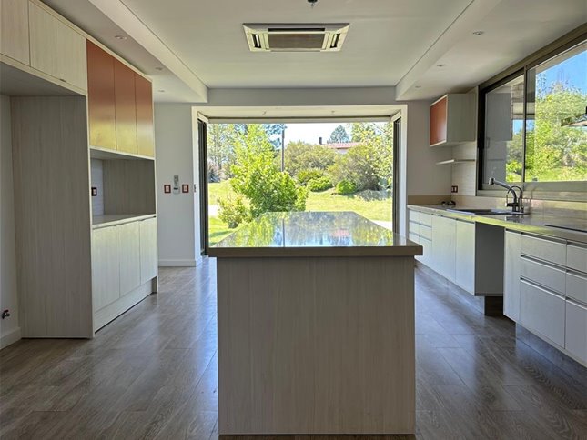 La casa desarrolla cinco dormitorios y seis baños, con dos suites principales que combinan dimensiones generosas, excelente luminosidad y un diseño cuidado en cada detalle. Los espacios sociales se destacan por su amplitud, la fluidez entre ambientes y una fuerte conexión con el exterior, integrando jardín, terrazas y áreas de disfrute de manera natural. La chimenea aporta calidez y carácter, mientras que los grandes ventanales acompañan la sensación de apertura y luz.